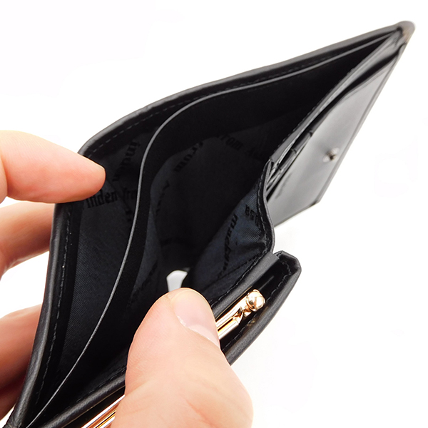 ・ Gamaguchi coin compartment with an inner partition for exceptional usability