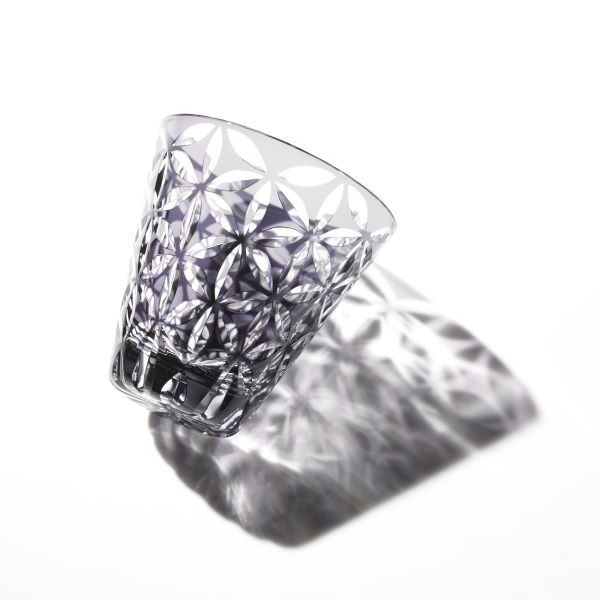 Edo Kiriko, Multi-purpose glass, Asa no Ha, grape (purple) , Hanasho, hemp leaf, Size: Ø 9.0 × H 9.0 cm, Tokyo traditional crafts, handmade