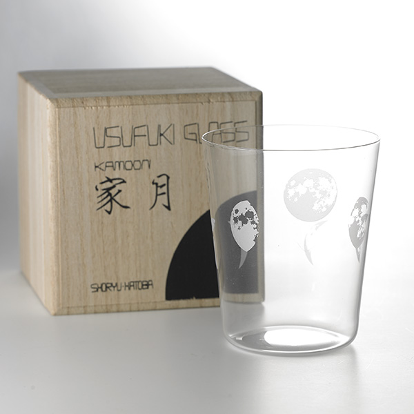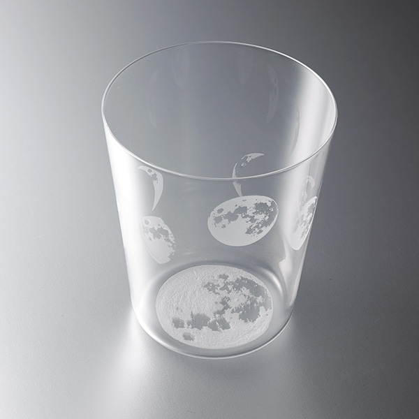 "Thin-blown glass," born from the outstanding techniques of skilled glassblowers. On the bottom of the glass, there is a full moon made to look three-dimensional bythree layers of separate engravings depicting the moon's surface. The waxing and waning of the moon is engraved around the body of the glass. The name "House Moon -kamoon-" was inspired by the concept of "enjoying the moon from your house."