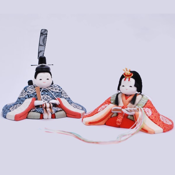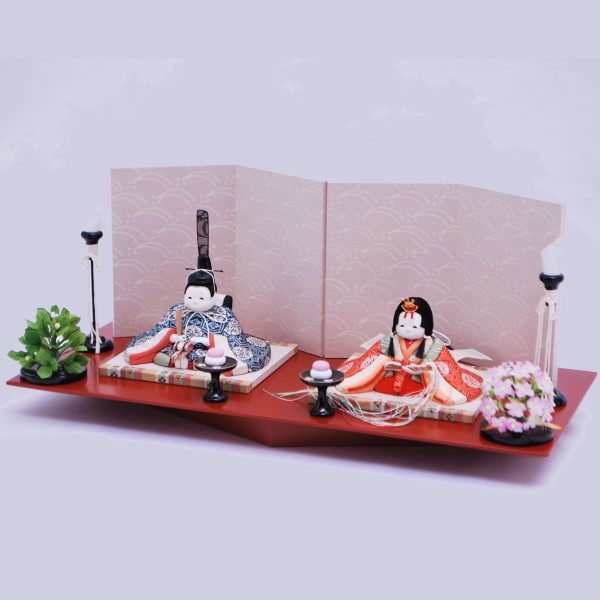 The Fuku (Happiness) Shinno Dolls are a set of hina dolls featuring a happy-looking, round-faced lord and princess. The dolls are made using the 100-year-old Edo kimekomi doll-making technique and the decorative folding screen is made with the traditional Edo karakimi technique.