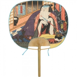 Edo Fan, Ukiyoe Toyokuni carved bamboo