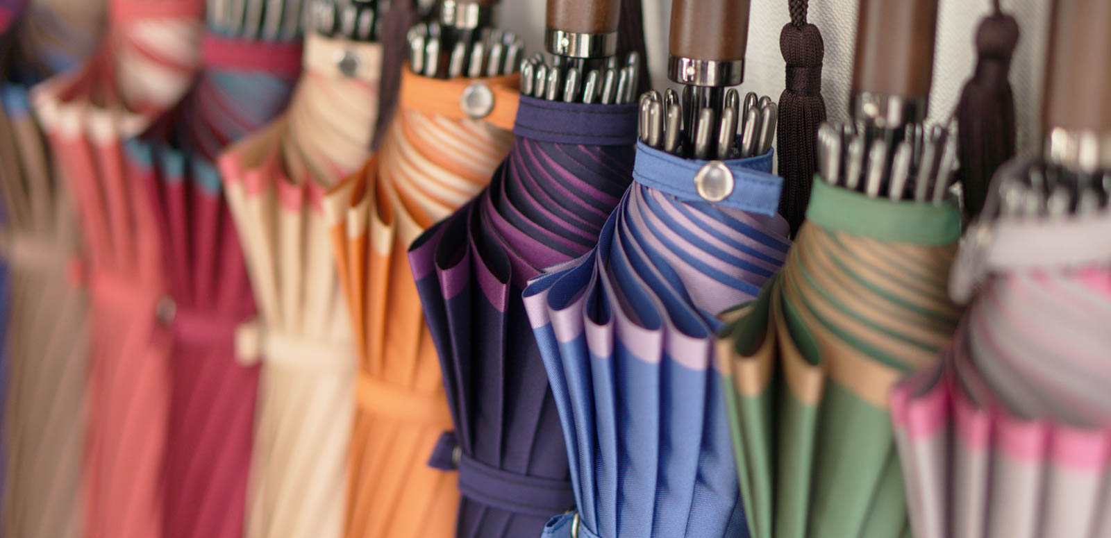 Japan’s umbrella industry reached its peak during the rapid growth period of the mid-1950s to mid-1970s, but since the decade of the 1990s it has lost much of its momentum due to competition from inexpensive overseas products. Heedless of the times, Komiya Shoten has continued to produce authentic Western-style umbrellas, paying attention to every detail. Their artisanship has not gone unnoticed, and in 2018, Komiya Shoten products were acclaimed as a traditional craft by the Tokyo Metropolitan Government, receiving the designation of Tokyo Umbrellas. Such recognition comes as a result of specialized skill development by its craftspeople, who work as frame makers, handle makers, and fabric artisans, amongst other roles.