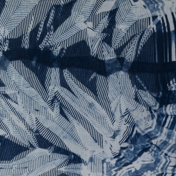 KOSOEN employs a centuries-old natural indigo lye-fermentation method from the Edo (1603-1868) period, which was the golden age of Japanese indigo dyeing. They procure sukumo, the raw material for natural indigo dyeing made by drying and fermenting the leaves of the polygonum tinctorium indigo plant, from artisans in Tokushima. In the workshop, they add ash lye and wheat bran, and the mixture is stirred in a vat morning and night to produce a slow fermentation. Given the challenging and time-consuming nature of managing the naturally fermented indigo dye, modern methods often use chemical agents to achieve results more quickly. However, natural indigo has a clarity and depth unattainable with chemical dyes. Repeated dyeing coats the fabric with collagen, making it durable and resistant to fading. Additionally, natural indigo is said to have antibacterial, antimicrobial, and UV-protection properties. For these reasons, KOSOEN continues to use the traditional, labor-intensive dyeing method for their products, presenting twice-yearly apparel collections of stoles, shirts, dresses and more, featuring beautiful tie-dye and gradient effects, and receiving numerous orders from well-known brands.